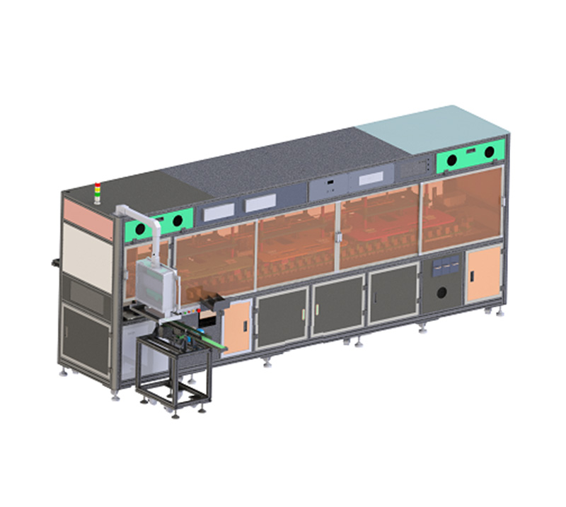 本設備用于金屬化薄膜電容器芯子賦能選別,通過芯子上料機構將芯子供給到主機的測試夾具,夾好在夾具上的芯子逐格移動與各測試部配置的電氣連接完成各檢查項目。通過檢查判定芯子良否品,不良品分類排出,良品由移載機構整理到芯子下料皮帶。設備需要人工排盤到專用的膠框進行上下料,也可根據客戶需求定制上下料方式。
